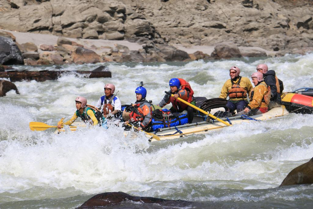 Départ matinal pour une session de rafting jusqu’au village de Dite-Dime. Au programme, quelques rapides de classe 3 et la rapide Pangkang (classe 4+) qui nécessitera un repérage au préalable. Nuit en tente.
